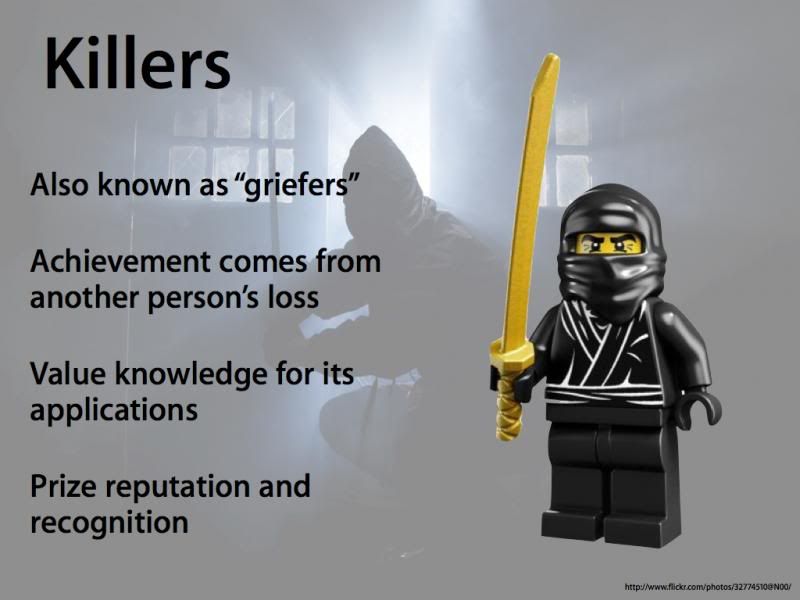 Killers like ACTING on other PLAYERS.  They wish to dominate them, either through bullying or politicking.  They use the tools of the game to cause distress to other players.